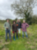 'There was a side project today at Aylmerton Surveyor’s Allotment. A field fence was totally rotten and full of metal pieces, so it was removed by Simon and Nigel, who recycled the barbed wire and put in new posts. Maria, Jake and Mark turned up after coffee (bearing doughnuts!) to help untangle the barbed wire, attach it to the new posts and then all five of us put in donated trees in pots and tree whips.'